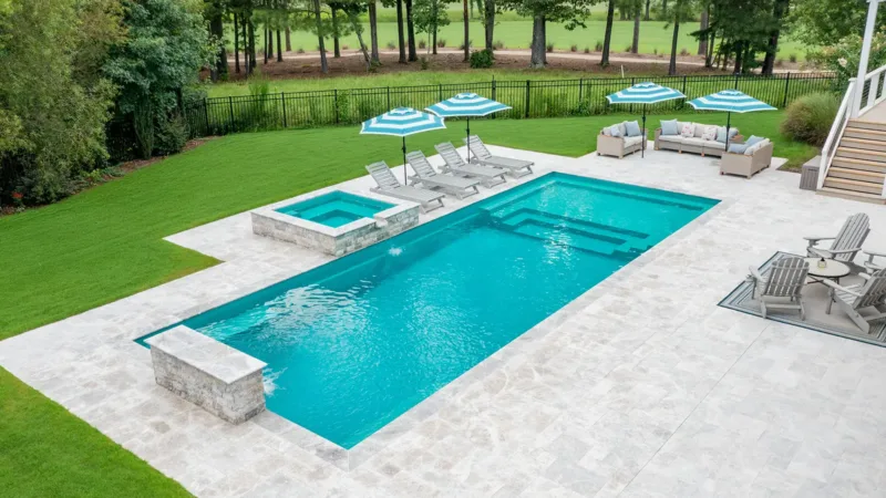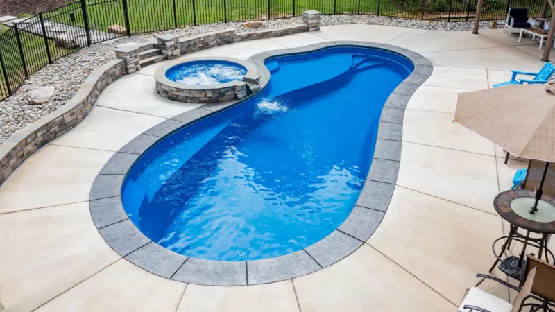 River Pools & Spas fiberglass pools are premium, pre-engineered designs built for strength, beauty, and low maintenance. Each features a smooth, durable surface that resists algae and fading. With modern shapes and lasting quality, they create the perfect foundation for any backyard oasis.