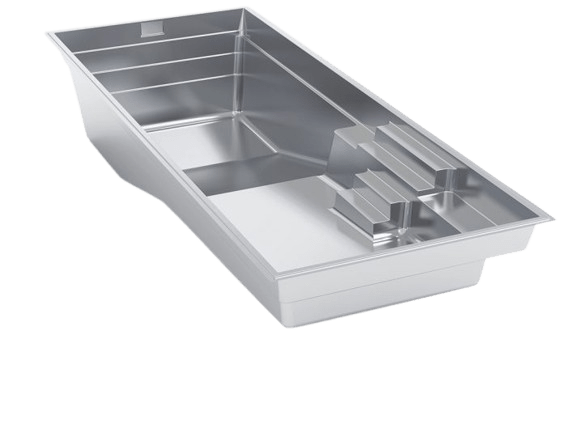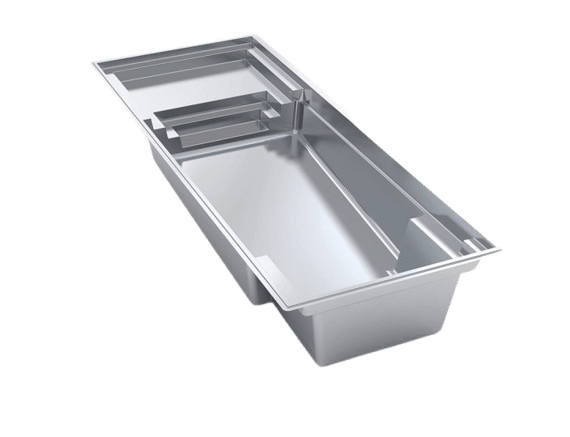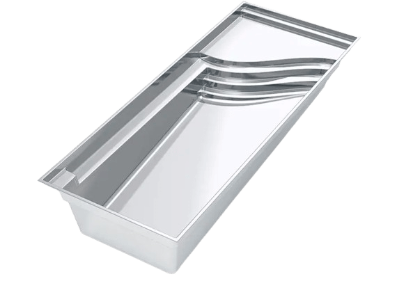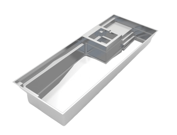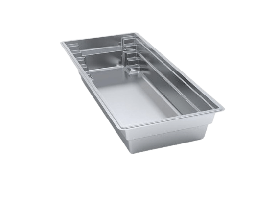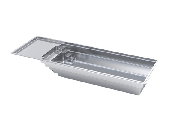 A flat-bottom pool that is perfect for group play activities and to fulfill exercise goals. A full bench is situated at the front of the pool coupled with entry stairs along both sides of the pool.