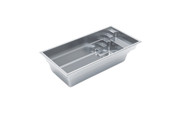 Our most popular pool due to its full-width splash pad at the front of the pool that ends with a stylish step design into a waiting swimming pool. The splash pad area is a little deeper making it perfect for lounge chairs.