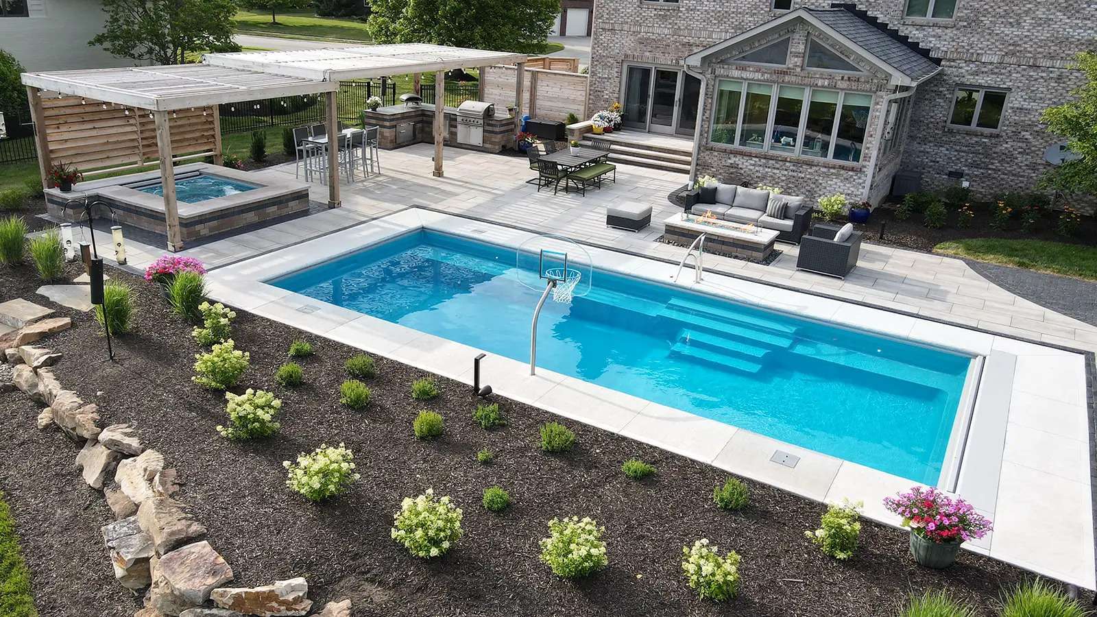 Your composite fiberglass swimming pool will arrive ready to be set in the ground. Compactable material is placed around the shell to fill the hole as the water level is raised. Once plumbing is arranged into place, your pool will be ready for swimming. Complete the look with lighting and your choice of landscaping and enjoy life at its best.